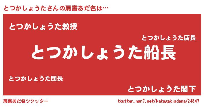 | 胡散臭い通販商品みたいなあだ名 | 『100人中100人が認めたマグネット磁石…その名も「とつかしょうた」』 |