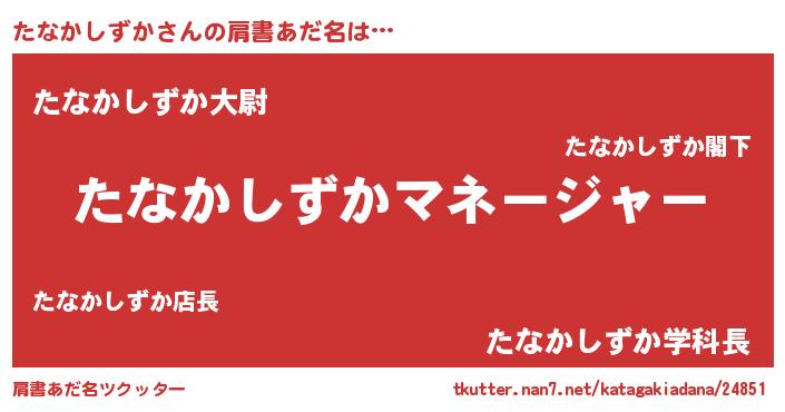 | 男性向けラノベタイトル風あだ名 | 『はたらくたなかしずかさま!』 |