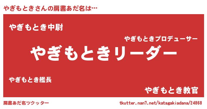 | ポケモン風あだ名 | 『ヒヤギモトキ』『ヤギキング』 |