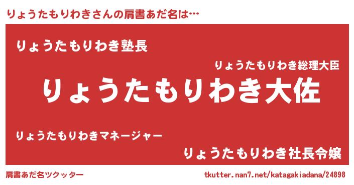 | 男性向けラノベタイトル風あだ名 | 『りょうたもりわき~年齢イコール彼女いない歴の魔法使い~』 |