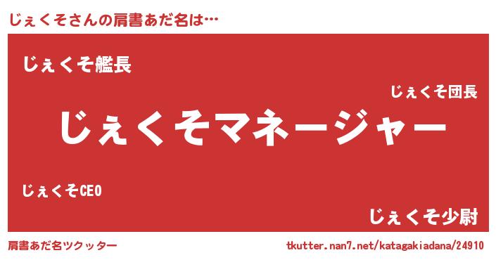 | 男性向けラノベタイトル風あだ名 | 『じぇくそに滅ぼされるだけの簡単なお仕事です』 |