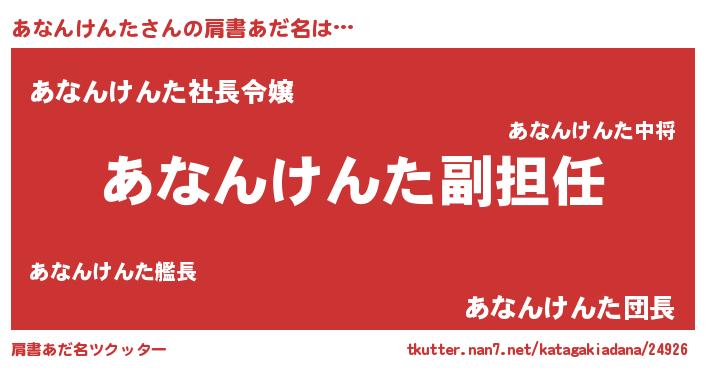 | ヘコむあだ名 | 『あなんけんた(震え声)』『あなもー』 |