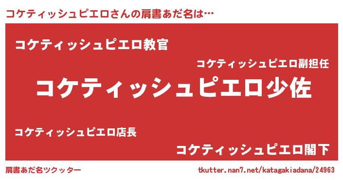 | 男性向けラノベタイトル風あだ名 | 『コケティッシュピエロスレイヤー』 |