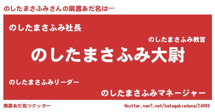 | 男性向けラノベタイトル風あだ名 | 『転生したらのしたまさふみだった件』 |