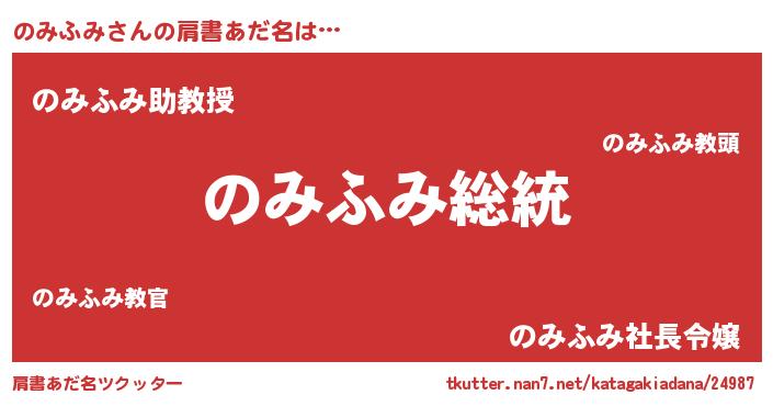 | 男性向けラノベタイトル風あだ名 | 『Re:のみふみから始める異世界生活』 |