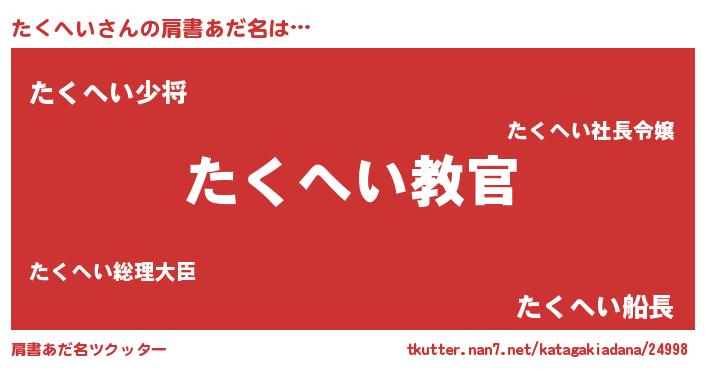 | ヒーロー風カッコイイあだ名 | 『仮面タクダー』『スーパータクヘイ』 |