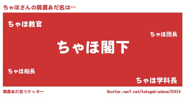 | 女子向けラノベタイトル風あだ名 | 『闇のちゃほ』『ちゃほ夫妻のなれそめ』 |