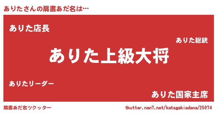 | 意味不明あだ名 | 『なめこ科ありた属』『ペロリンありた』 |