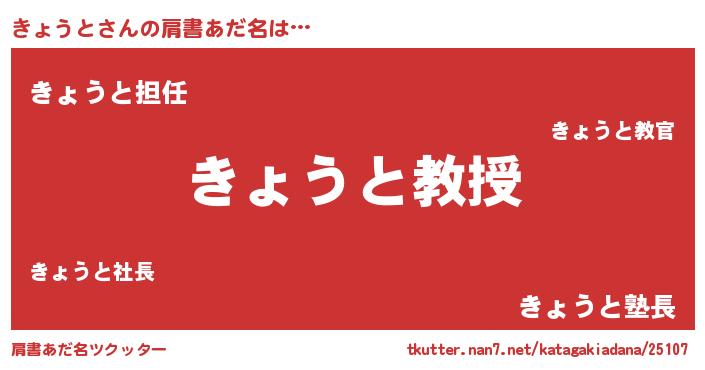 | ヘコむあだ名 | 『きょうと(小並感)』『きょっぺ』 |