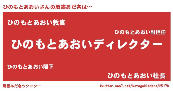 | ヘコむあだ名 | 『ひのにゅー』『ひのもとあおい(苦笑)』 |
