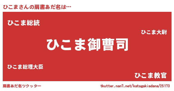 | 男性向けラノベタイトル風あだ名 | 『ひこまの憂鬱』『魔法科高校のひこま』 |