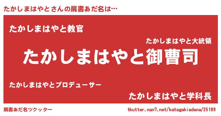 | 胡散臭い通販商品みたいなあだ名 | 『億万長者になれる霊験あらたかなお札…その名も「たかしまはやと」』 |