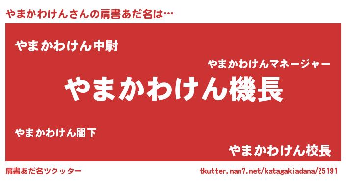 | 男性向けラノベタイトル風あだ名 | 『うちのやまかわけんが世界を掌握している!』 |
