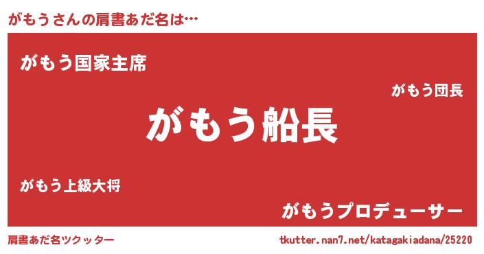 | 男性向けラノベタイトル風あだ名 | 『緋弾のガモウ』『はたらくがもうさま!』 |
