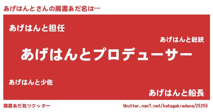 | 意味不明あだ名 | 『永久保存あげはんと』『自称あげはんと』 |