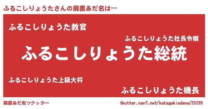 | 女子向けラノベタイトル風あだ名 | 『ふるこしりょうたなんてお断りですっ。』 |