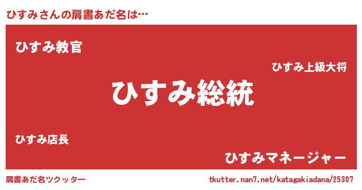 | 意味不明あだ名 | 『自称ひすみ』『住所不定無職ひすみ(93歳)』 |