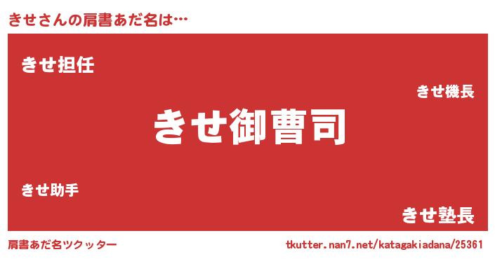 | 胡散臭い通販商品みたいなあだ名 | 『モテモテ間違いなし霊験あらたかなお札…その名も「きせ」』 |