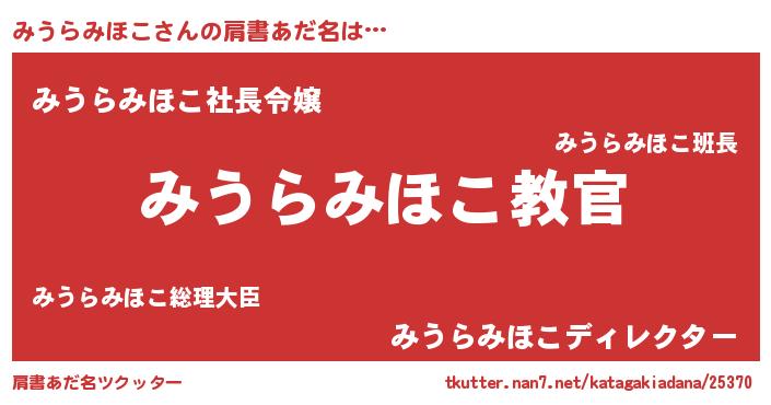 | 男性向けラノベタイトル風あだ名 | 『この素晴らしい世界にみうらみほこを!』 |