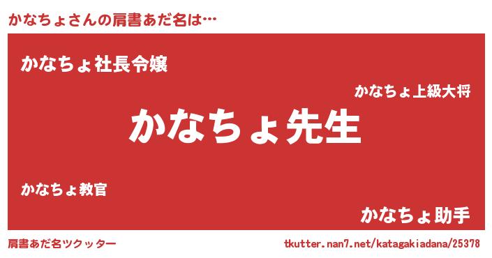 | 男性向けラノベタイトル風あだ名 | 『かなちょという概念が存在しない退屈な世界 』 |