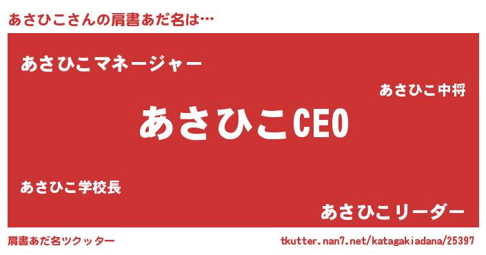 | ヒーロー風カッコイイあだ名 | 『スーパーアサヒコ』『炎刃騎士アサ』 |