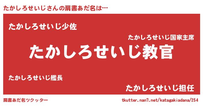 | 女子向けラノベタイトル風あだ名 | 『乙女ゲームの破滅フラグしかない悪役たかしろせいじに転生してしまった…』 |