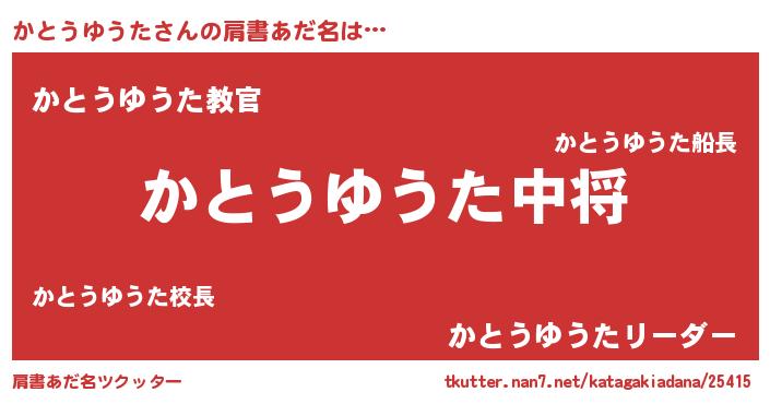 | 男性向けラノベタイトル風あだ名 | 『かとうゆうた~年齢イコール彼女いない歴の魔法使い~』 |