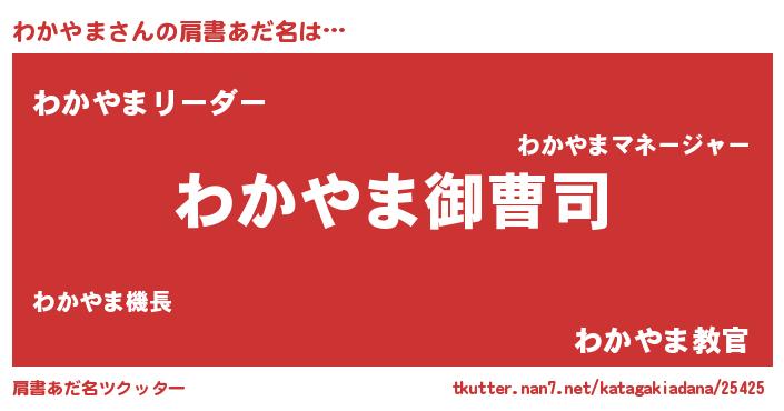 | ヒーロー風カッコイイあだ名 | 『スーパーワカヤマ』『天弓騎士ワカ』 |