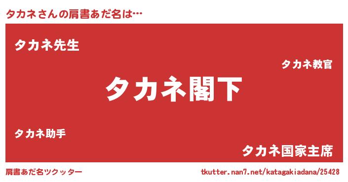 | 意味不明あだ名 | 『自称タカネ』『永久保存タカネ』 |
