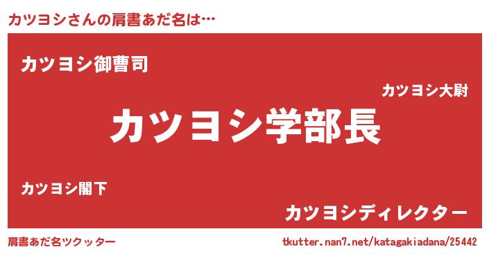 | 男性向けラノベタイトル風あだ名 | 『おまえをオタクにしてやるから、俺をカツヨシにしてくれ! 』 |