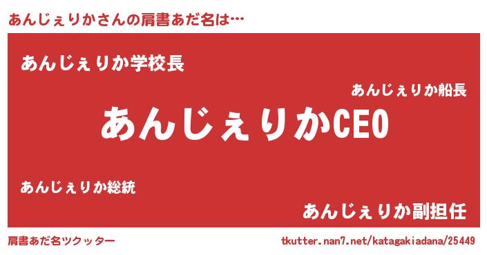 | 女子向けラノベタイトル風あだ名 | 『あんじぇりか姫と円卓の騎士』 |