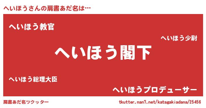 | 男性向けラノベタイトル風あだ名 | 『Re:へいほうから始める異世界生活』 |