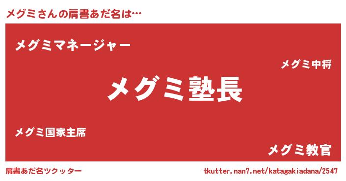 | ファンタジー風あだ名 | 『ファントムメグス』『ヴァルメグーナ』 |