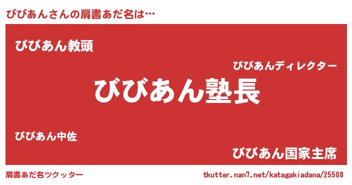 | ヘコむあだ名 | 『びびっちょ』『びびあん(笑)』 |