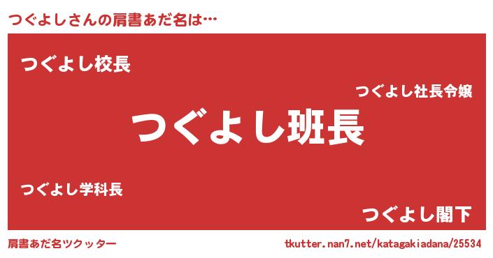 | ヘコむあだ名 | 『つぐっ子』『つぐよし(爆)』 |