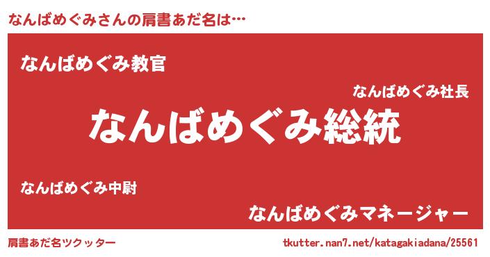 | 意味不明あだ名 | 『自称なんばめぐみ』 |