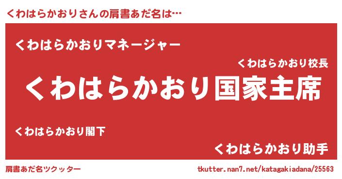 | 女子向けラノベタイトル風あだ名 | 『くわはらかおりの雑貨屋さん』 |