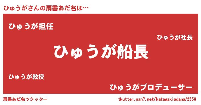 | 男性向けラノベタイトル風あだ名 | 『うちのひゅうがが世界を掌握している!』 |