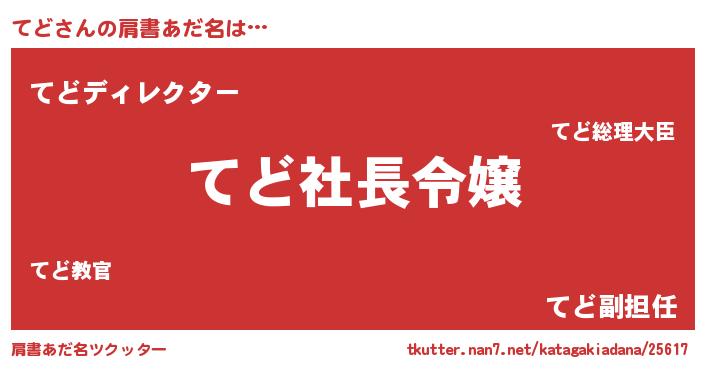 | 男性向けラノベタイトル風あだ名 | 『てどの憂鬱』『はたらくてどさま!』 |