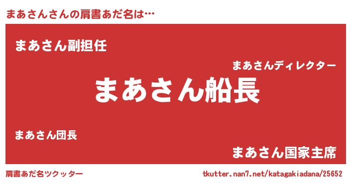 | 意味不明あだ名 | 『永久保存まあさん』『自称まあさん』 |
