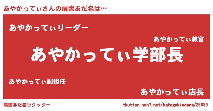 | 男性向けラノベタイトル風あだ名 | 『おまえをオタクにしてやるから、俺をあやかってぃにしてくれ! 』 |