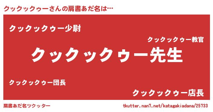 | 男性向けラノベタイトル風あだ名 | 『クックックゥーという概念が存在しない退屈な世界 』 |