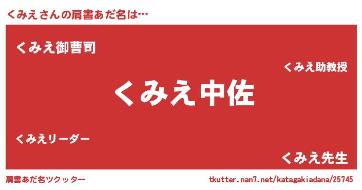 | ヘコむあだ名 | 『くみにー』『くみえ(遠い目)』 |