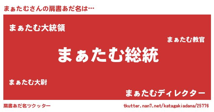 | 男性向けラノベタイトル風あだ名 | 『Re:まぁたむから始める異世界生活』 |