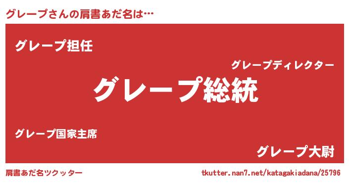 | 意味不明あだ名 | 『自称グレープ』『永久保存グレープ』 |