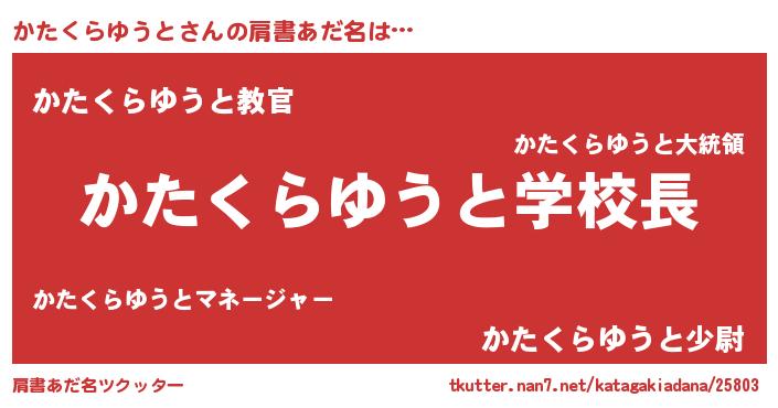 | 女子向けラノベタイトル風あだ名 | 『かたくらゆうと夫妻のなれそめ』 |