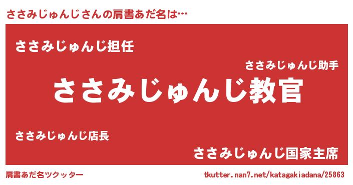 | ヘコむあだ名 | 『ささみじゅんじ(震え声)』『つくし』 |