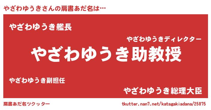 | 男性向けラノベタイトル風あだ名 | 『ノーゲーム・ノーヤザワユウキ』 |