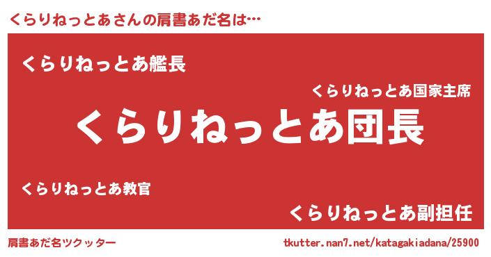 | 女子向けラノベタイトル風あだ名 | 『くらりねっとあの卵を拾いまして』 |