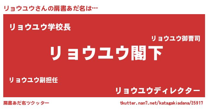 | 男性向けラノベタイトル風あだ名 | 『魔法科高校のリョウユウ』 |